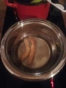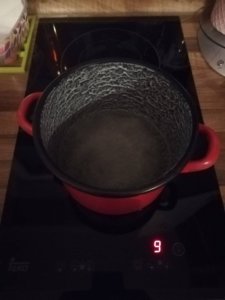 1. Lábosban odatesszük a liszt kivételével az alapanyagokat, megvárjuk még felforr, majd a tűzről levéve hozzáadjuk a lisztet és elkeverjük.