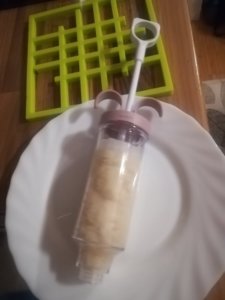 2. Tésztanyomó zsákba vagy valamilyen tésztanyomóba töltjük, és felrakjuk melegedni az olajat. (Ha valakinek nincsen zsákja, kézzel is rudakká sodorhaja, ugyan úgy jó.) Majd ha az olaj felemelegedett, rudakat nyomunk az olajba vagy az előre összesodortakat rakjuk bele. Mikor szép aranybarnára sült, kivesszük egy papírtörlőre lecsöpögtetni, és ha szeretnénk meforgatjuk a fajéjas cukros keverékben.