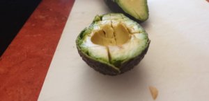 1.lépés: Az avokádót megpucoljuk. És a héjában felvágjuk kocka alakra, majd kikaparjuk.