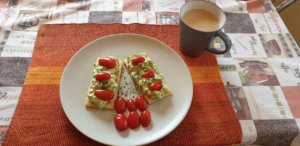 3.lépés: Majd ha ez kész, megkenjük a kenyeret a krémmel és paradicsommal tálaljuk.