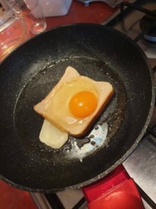 ∠> Tipp: Ha nem sül át rendesen a tojás, de a kenyér igen, akkor a kenyeret megfordítjuk